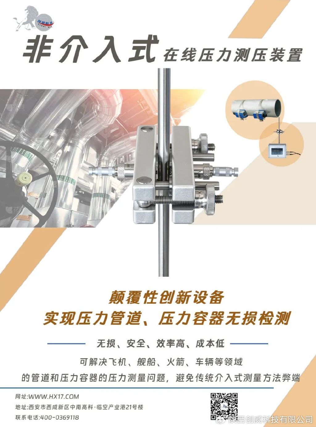 隨著技術(shù)積累與持續(xù)深入,該技術(shù)日趨成熟,目前我公司已為某省院計(jì)量機(jī)構(gòu)、某航天機(jī)構(gòu)、某海軍機(jī)構(gòu)提供非介入式在線壓力測量服務(wù),備受好評(píng),解決了這些機(jī)構(gòu)之前“測不了”的難題,如果您對(duì)創(chuàng)威非介入測壓技術(shù)感興趣,請(qǐng)致電400-0369-118,期待您的來電。