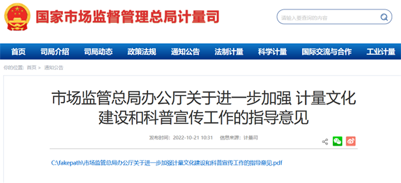 市場監(jiān)管總局辦公廳關(guān)于進一步加強計量文化建設(shè)和科普宣傳工作的指導(dǎo)意見
