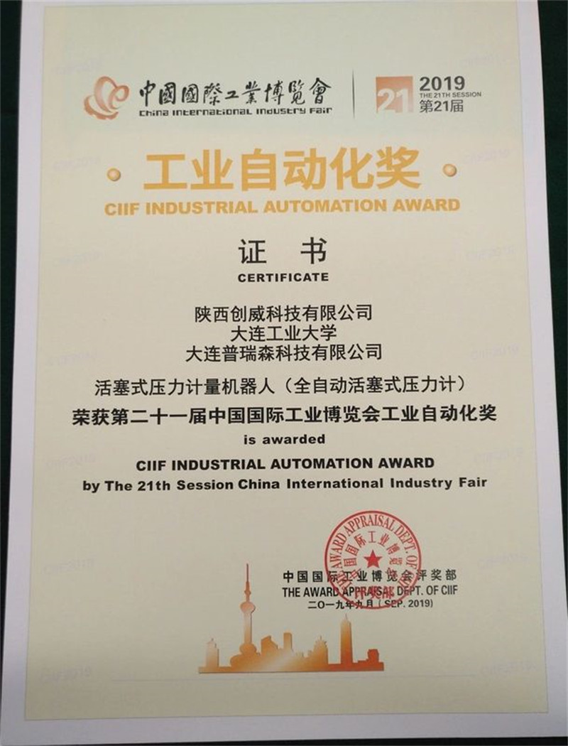 創(chuàng)威產(chǎn)品壓力計(jì)量機(jī)器人(高精度全自動(dòng)活塞式壓力計(jì))在2600多家中外展商中脫穎而出,與國(guó)際國(guó)內(nèi)著名品牌施耐德、費(fèi)斯托、和利時(shí)、川儀股份這些大腕一起領(lǐng)獎(jiǎng),獲得此項(xiàng)大獎(jiǎng)(僅有10家單位獲獎(jiǎng))是客戶對(duì)創(chuàng)威產(chǎn)品的認(rèn)可,也是創(chuàng)威公司不斷創(chuàng)新的動(dòng)力,更需繼續(xù)加油,為我國(guó)高端熱工壓力計(jì)量設(shè)備,貢獻(xiàn)自己的力量。繼續(xù)努力不斷提升產(chǎn)品品質(zhì),打造基準(zhǔn)級(jí)壓力計(jì)量設(shè)備國(guó)產(chǎn)精品,滿足不斷增長(zhǎng)的客戶使用要求。