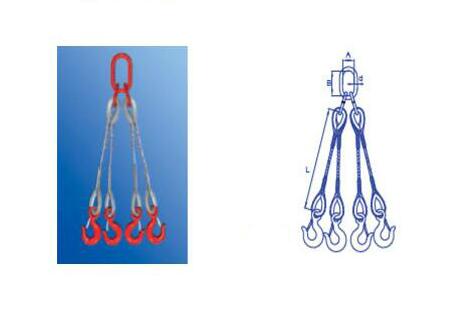 6、吊掛方式系數(shù):在一般使用條件下,由吊掛方式(多肢吊索分肢數(shù)、肢間夾角、單肢吊索不同吊掛方式)所確定的吊索安全工作載荷與性能完全相同的單肢吊索極限工作載荷比值。