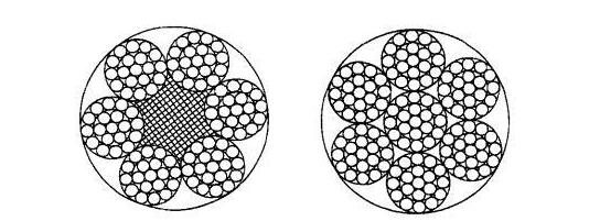 瓦林吞式(W):鋼絲的排列中,外層數(shù)目是內(nèi)層數(shù)目的兩倍,外層鋼絲一大一小交替排列。