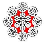 3、繩結(jié)構(gòu)呈向多絲復雜結(jié)構(gòu)演進趨勢,使繩股以不同直徑的鋼絲和相同的捻距作一次性捻制完成,各層鋼絲間呈線接觸狀態(tài),使工作狀態(tài)下鋼絲繩內(nèi)的鋼絲所受接觸應力大為減少,且在彎曲狀態(tài)下也不產(chǎn)生二次彎曲應力,特別是在短時間內(nèi)正向彎曲和反向彎曲轉(zhuǎn)換頻繁的工作狀態(tài)下,更具其結(jié)構(gòu)優(yōu)勢和應用效果,因此該品種鋼絲繩具有結(jié)構(gòu)緊密、耐疲勞性高、破斷拉力大、使命壽命長的諸多優(yōu)勢。