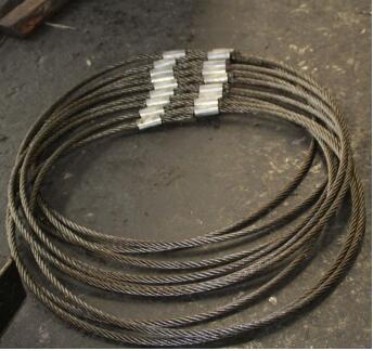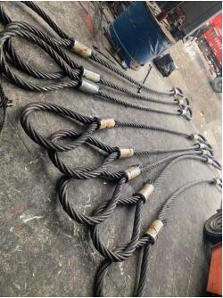 咱們國家的建設(shè)在飛速發(fā)展,建橋梁的工地隨處可見,橋梁的噸位一般都十分大,常見的80噸的橋梁,需要用直徑52mm的繩子,像60.5mm,65mm,70mm,80mm,90mm,100mm,這些直徑都是咱們給這些大企業(yè)長時間供貨經(jīng)常制造的,圖一是手藝插編的吊索具,圖二是限制吊索。限制吊索,便是經(jīng)過壓機(jī),用鋁套把鋼絲繩固定在一起,制成如圖二所示的限制吊索,限制吊索的長短,圈頭大小等特別要求,都能夠依據(jù)實際使用情況按需定制,能夠滿足在起重吊裝的全部需求。