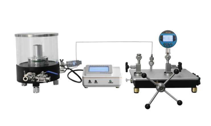 絕壓氣體活塞壓力計在氣體活塞式壓力計的基礎(chǔ)上,加入真空泵、真空罩等元件,引入測量系統(tǒng)的絕壓環(huán)境,從而可對絕壓進(jìn)行測量,其各項指標(biāo)符合《氣體活塞式壓力計》檢定規(guī)程。