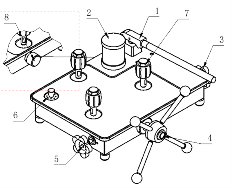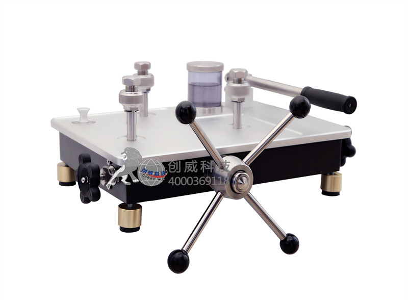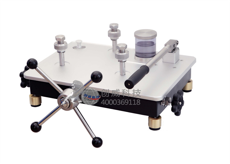 該校驗(yàn)器結(jié)構(gòu)簡(jiǎn)單、操作維護(hù)方便、不易泄漏、升降壓平穩(wěn),采用壓桿式預(yù)壓結(jié)構(gòu),可快速發(fā)生所需壓力值,減少因傳壓介質(zhì)被污染而造成的管路堵塞問(wèn)題。
